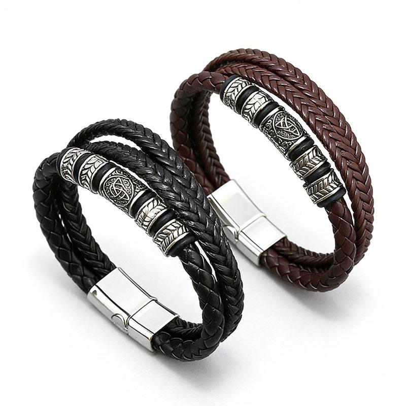 Hiphop Rock Leather Braided Bracelet for Men Multi-layer Leather Wrap Vintage Viking Bracelet Mens Punk Wristband