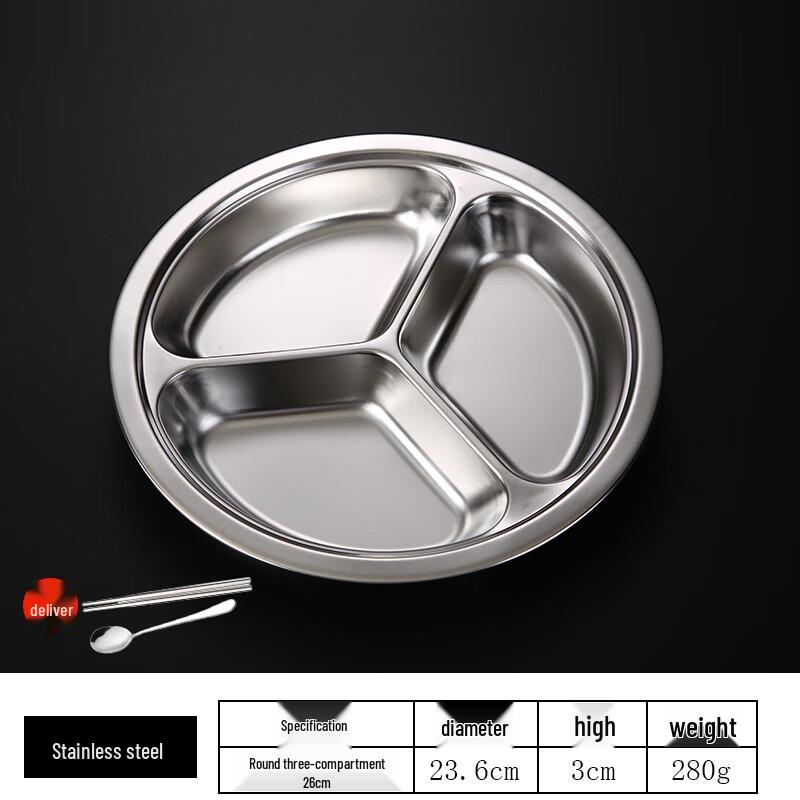 YunDuo 304 Stainless Steel Round 3-Compartment Kids' Plate