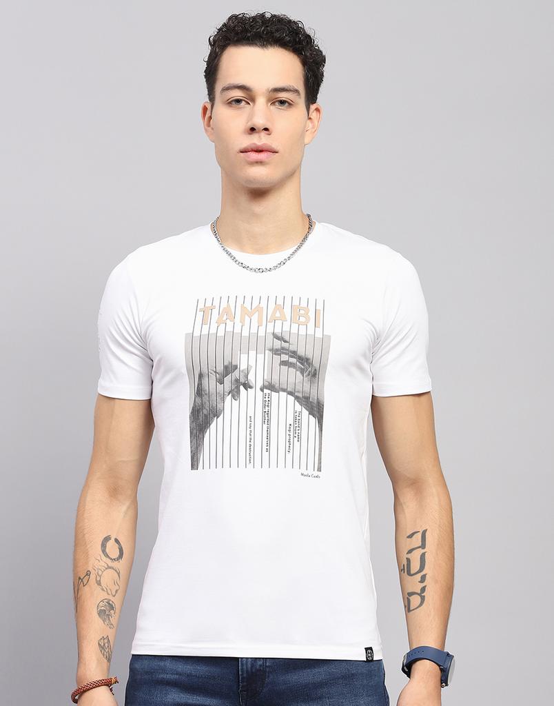 Monte Carlo Mens Printed White Round Neck Half Sleeve T-Shirt