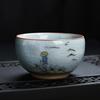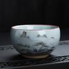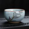 Tea Cup Ceramic Tasting Cup Hand-painted Ru Kiln Crackle Glaze Nurturing Pu'er Kung Fu Single Cup Retro Master Cup with PrintLOG