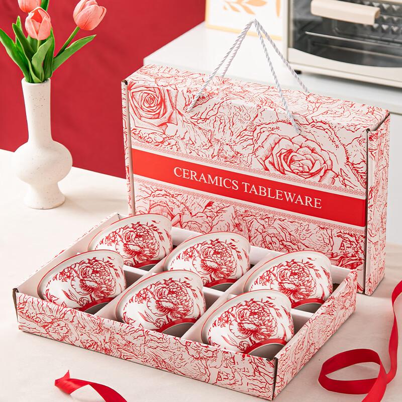 Red Rose Ceramic 6-Bowl Dinnerware Gift Set