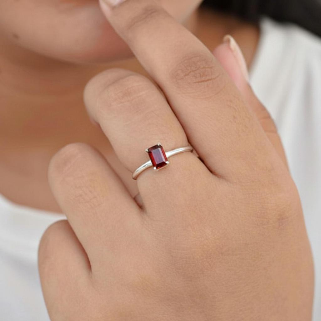 Red Garnet Octagon Cut Gemstone Statement Ring, 925 Sterling Silver, Minimalist Stacking Ring for Women