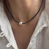 Φυσικό κολιέ με μαργαριτάρια γλυκού νερού niche μεγάλο μπαρόκ μαργαριτάρι μαύρο σπινέλιο αλυσίδα κλείδας κλειδαριάς casual ευέλικτο για άνδρες και γυναίκες ζευγάρια