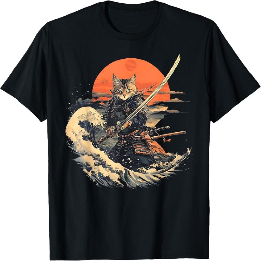 Samurai Γάτος Γραφικό T-Shirt Πολεμιστής Βίντατζ Ιαπωνική Τέχνη Anime T-Shirt για Άνδρες Γυναίκες Κορίτσια Παιδιά
