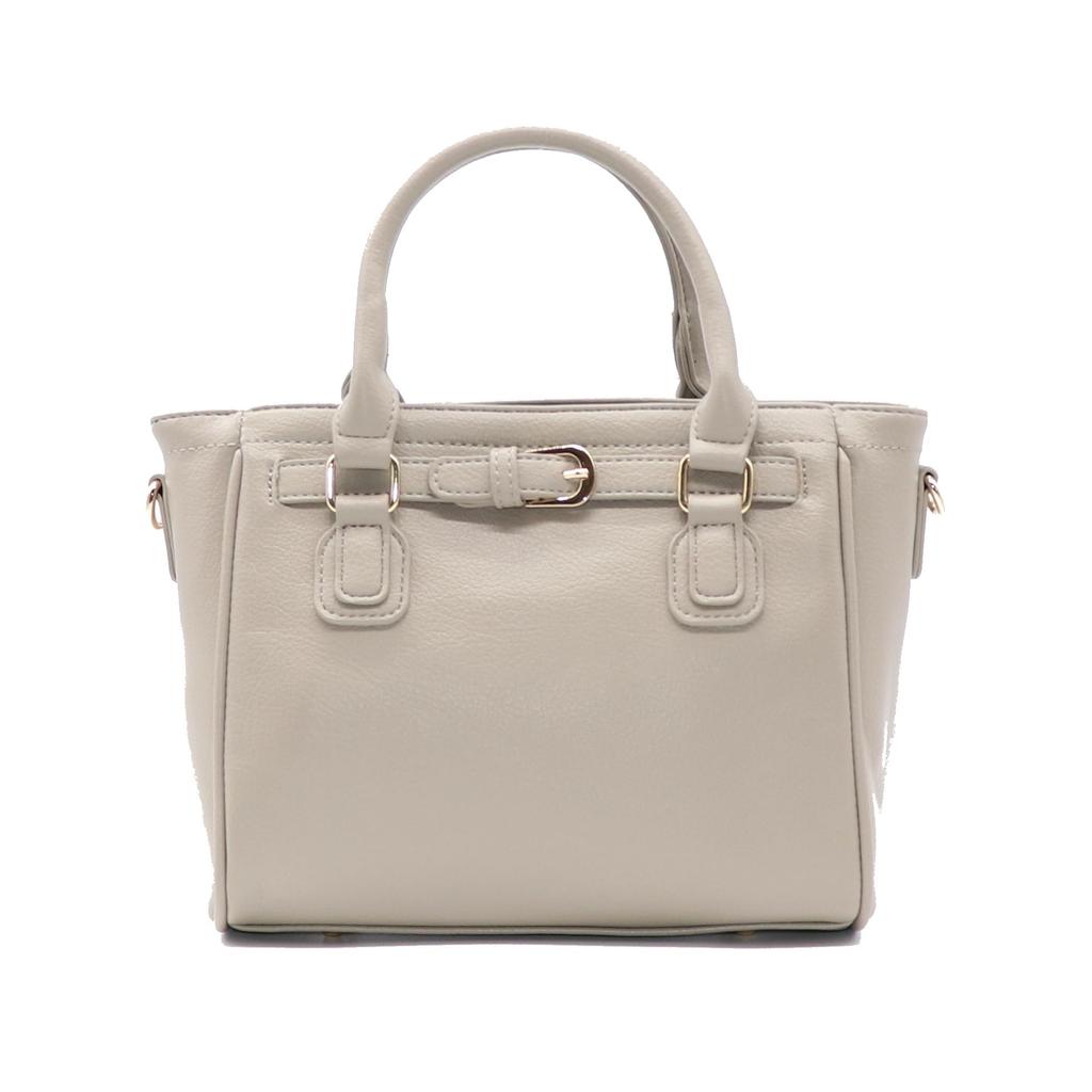 ① The simple design with a belt creates a sophisticated look. ② The material is made of PU leather with a subtle grain and a smooth feel like genuine leather. ③ The size is also good and it has ample storage space for a wallet, smartphone, pouch, etc. ④ It can be used as both a handbag and a shoulder bag.