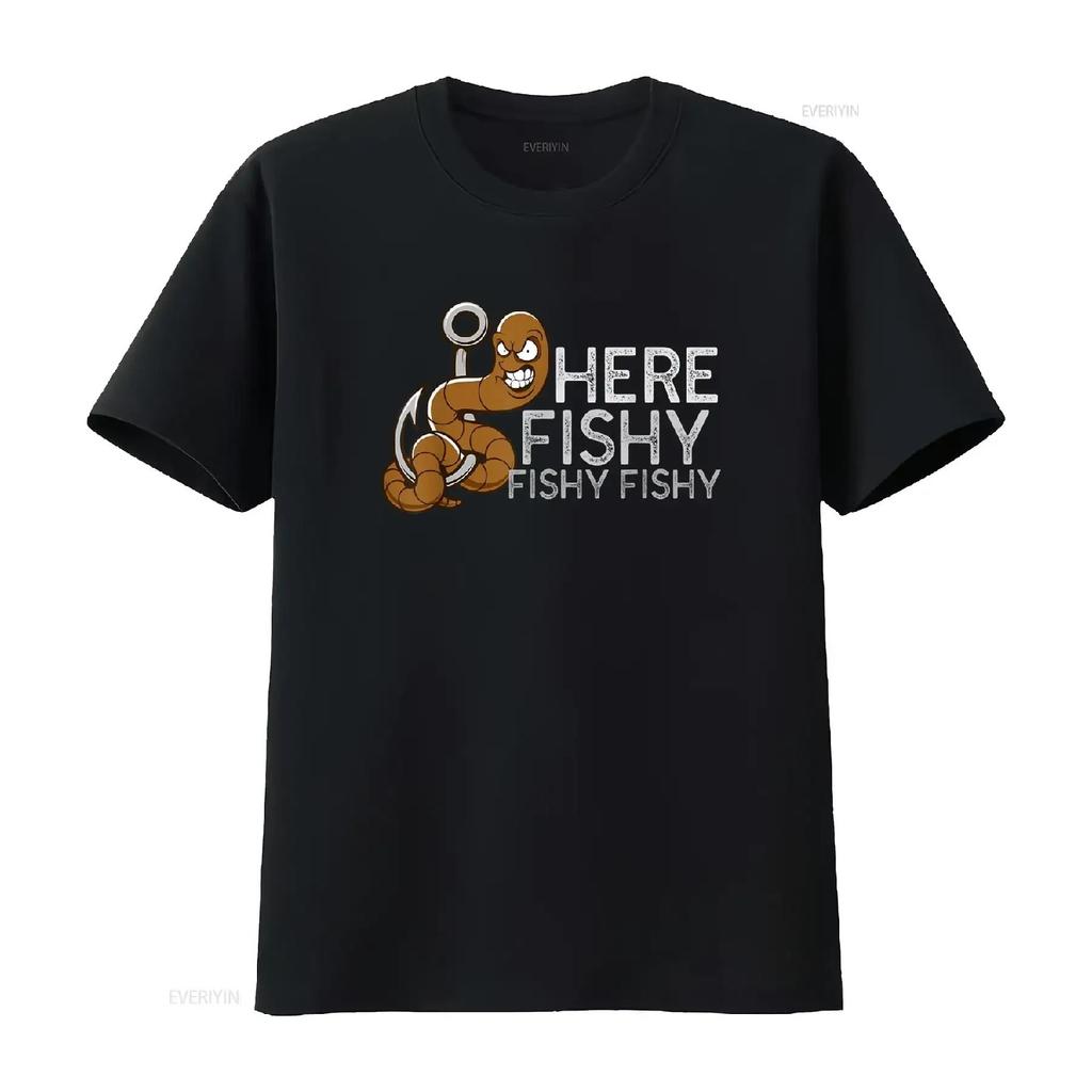 Fisherman Fishing T Shirt Here Fishy vintage Washed Comfortable designer clothes Breathable streetwear Unisex Slightly Casual
