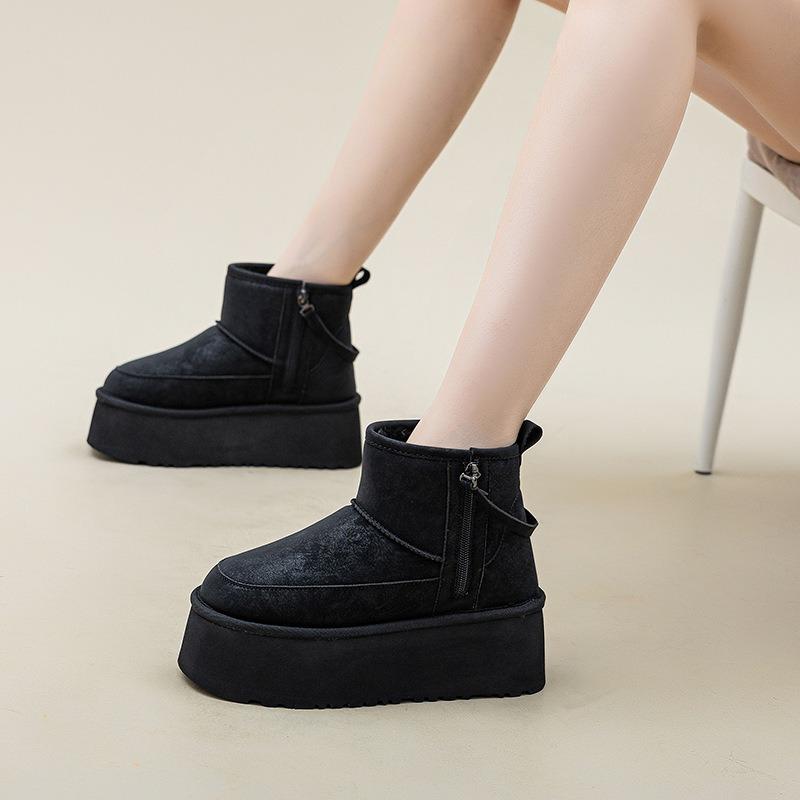 New snow boots heightened thick-soled mid-tube side zipper warm women's boots women's shoes casual versatile cotton shoes