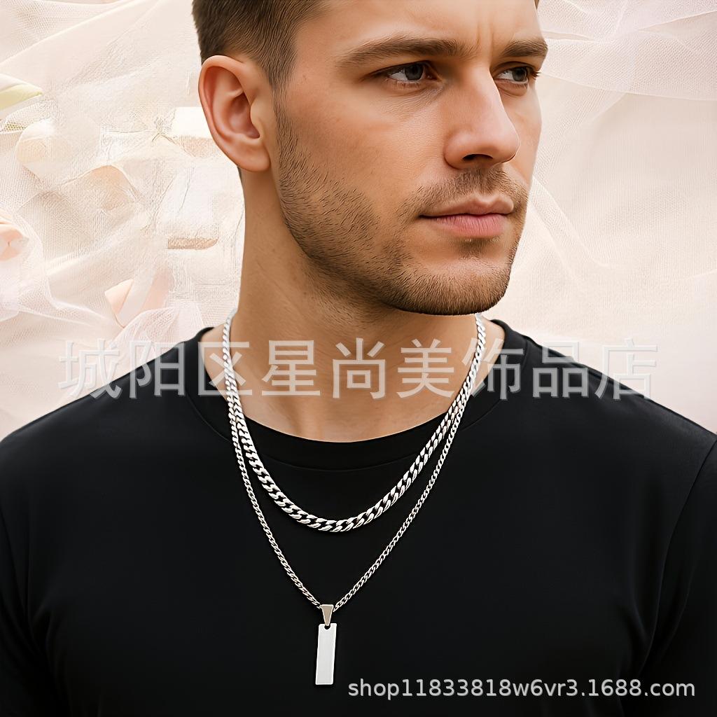 Long Double Layer Stacked Necklace Pendant Simple Personality Pendant ins Hip Hop Accessories