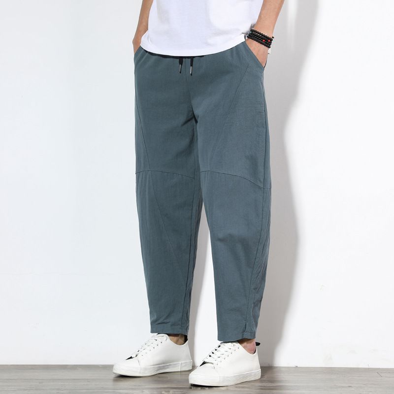 Japanese-style Retro Cotton and Linen Casual Pants, Men's Plus-size Chinese-style Loose Small-leg Radish Pants, Thin Linen Long Pants