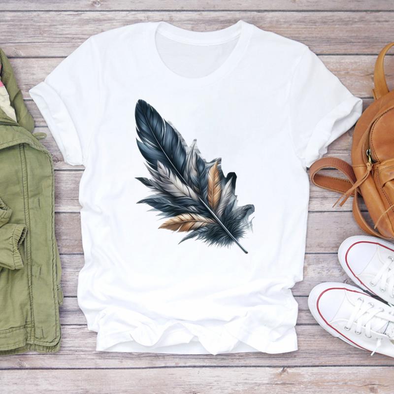 (Asian Size) Printed Women Tee Lady feather style trend Female Clothing T Shirt Casual Fashion Top Graphic Short Sleeve T-shirts