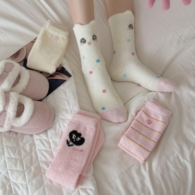 Winter Fleece Thickened Socks - Soft and Warm Mid-calf Socks in Pink, Cute Cartoon Design, Australian Wool Fluffy Socks