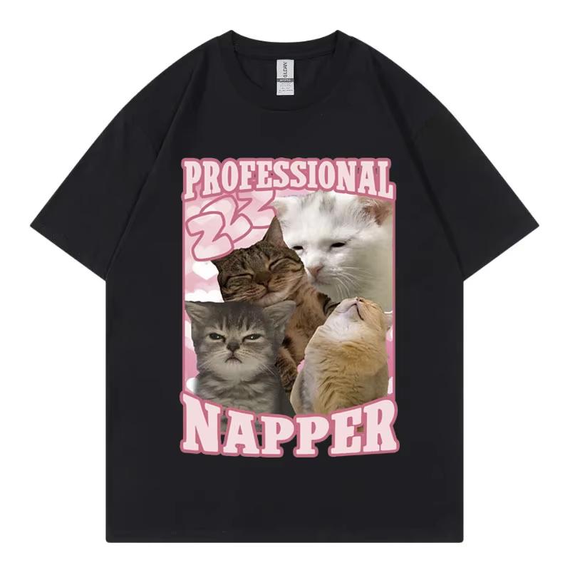 Funny Professional Napper Cat Meme T-shirt Kawaii Fashion Short Sleeve T-shirts High Quality Cotton Clothing Tee Shirt Unisex