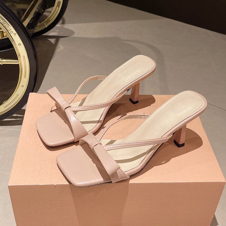 2025 summer and autumn word with bow elegant high-heeled slippers fairy style French stiletto sandals outside
