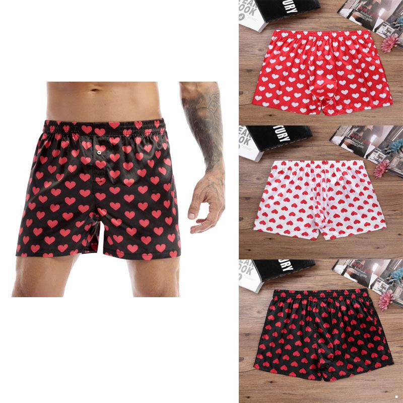 Mens Love Heart Print Classic Soft Boxer Shorts Lightweight Loose Sports Short Pants
