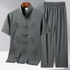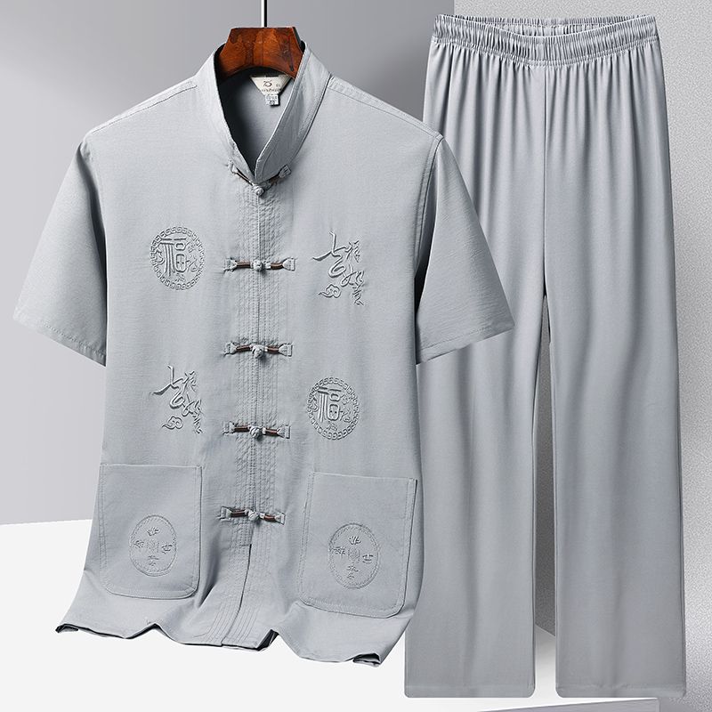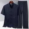 Embroidery Kung Fu Tai Chi Set Plus Size Cotton Linen Men Tang Suit Hanfu Chinese Style Casual Short-Sleeved Shirt Trousers Suit