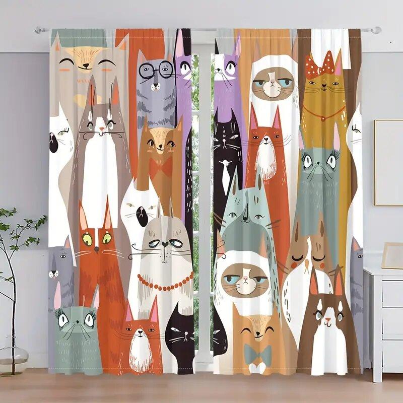 Cartoon and anime cat pattern printed curtains bedroom and living room home decoration room decoration