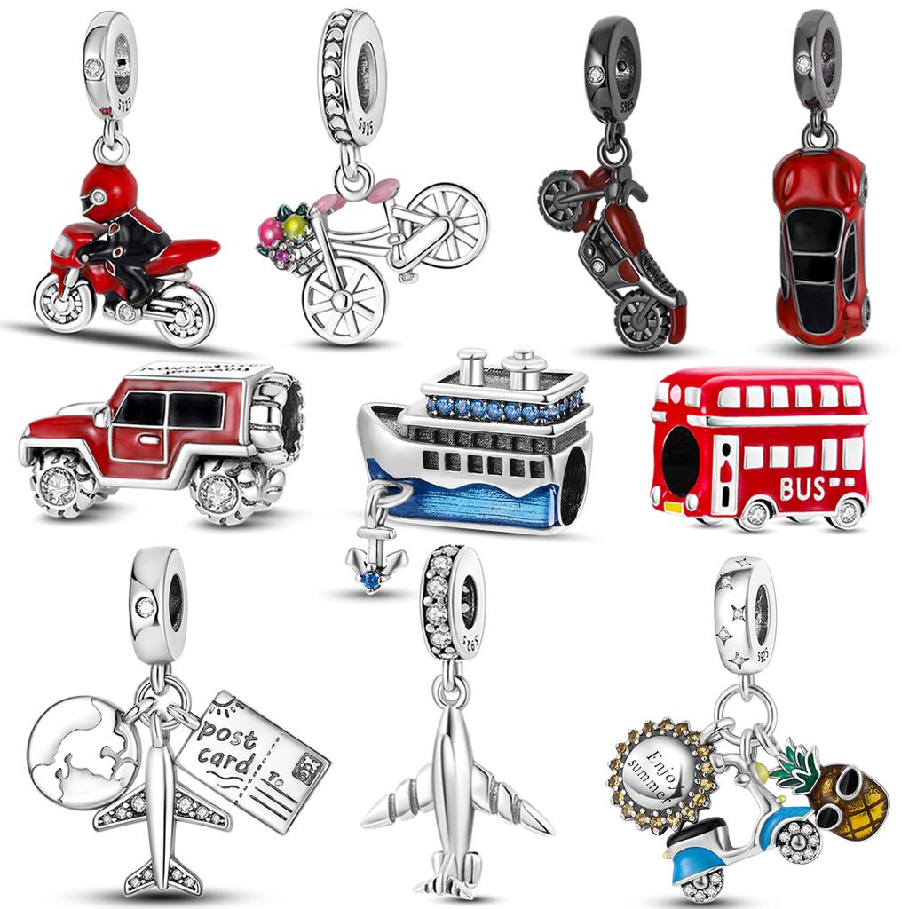Copper Travel Vehicle Charms Beads Zirconium Motorcycle Truck Car Airplane Dangle Fit Bangle Bracelet Necklace Diy Jewelry