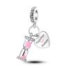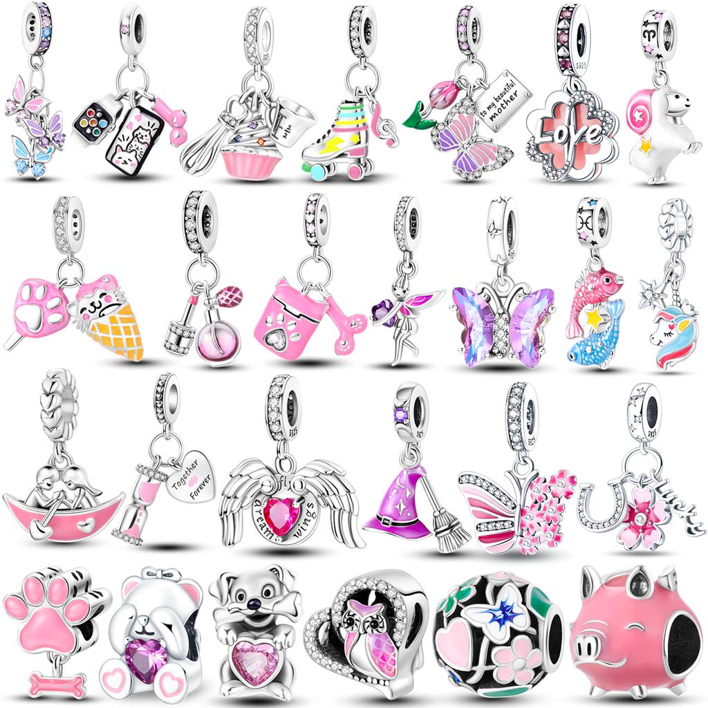 Copper Pink Color Series Charms Beads Lovely Pink Butterfly Dangle Heart Shape Pendant Fit Bangle Bracelet Necklace Jewelry
