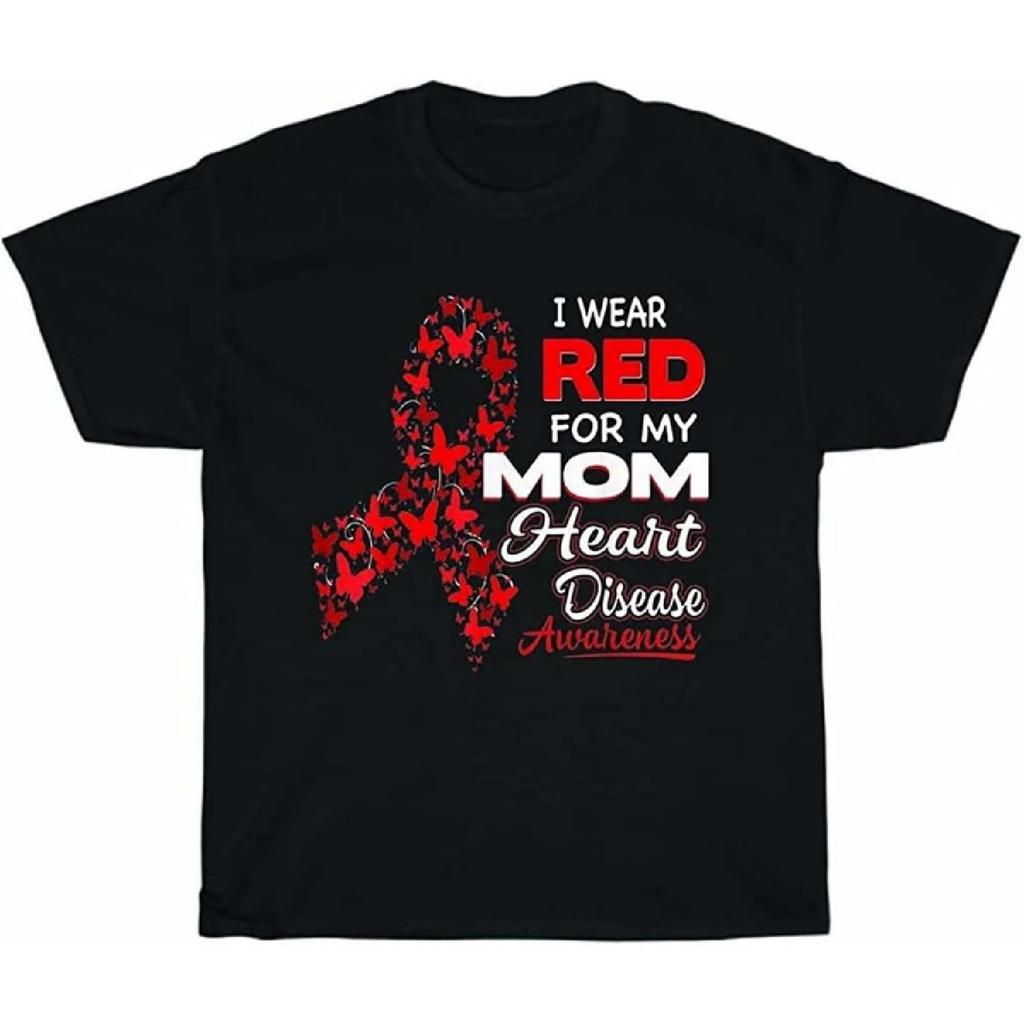 BINFA FASHION Men's I Wear Red for My Mom Heart Attacks Disease Awareness Unisex Tee Gift T-Shirts Black