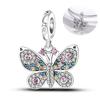 Copper Charms Pink Butterfly Perfume Beads Fit Original Bangle Charm Bracelet Fine Diy Women Jewelry Gift