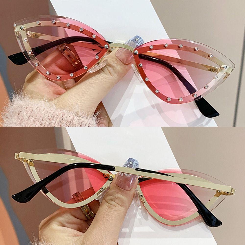 Trendy Gradient Cat Eye Sunglasses Multicolor New Stylish Party Sun Glasses UV400 Protection Rimless Shades for Women & Men