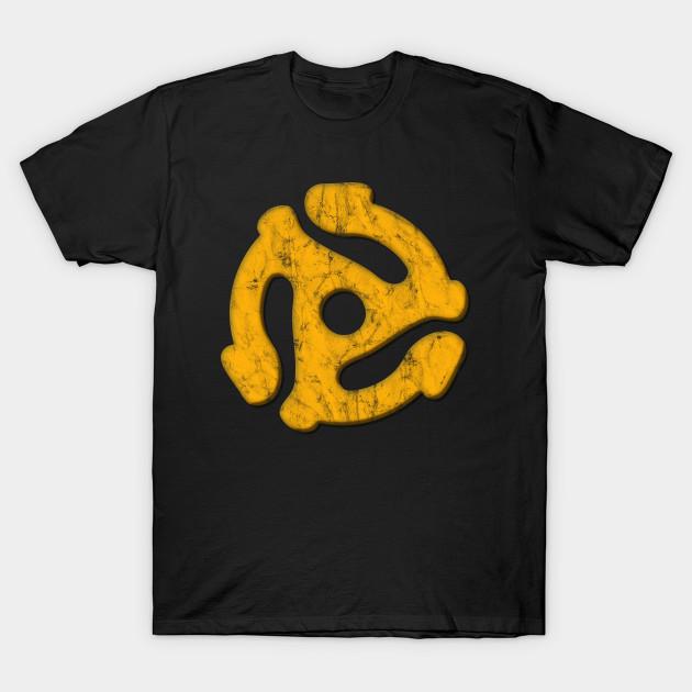 Men Black Print T-shirt 45 Record Adapter (Distressed) No-Cut Transfer Paper Print Cotton Tshirt