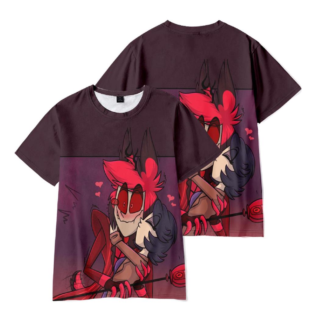 5 χρώματα Hazbin Hotel Anime Γυναικεία Ανδρικά μπλουζάκια Γραφικό πουκάμισο καρτούν με στάμπα σε λαιμόκοψη Oversized κοντά μανίκια Μόδα Ανδρικά ρούχα Streetwear