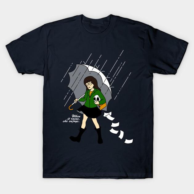 Men Black Print T-shirt When It Rains, She Enjoys No-Cut Transfer Paper Print Cotton Tshirt