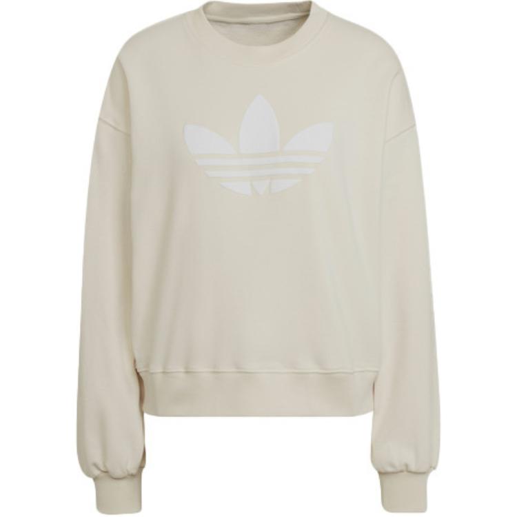 Adidas Originals Crew Sweatshirt Solid Color Sports Pullover Short Women Sweatshirt Yellow White HU1606