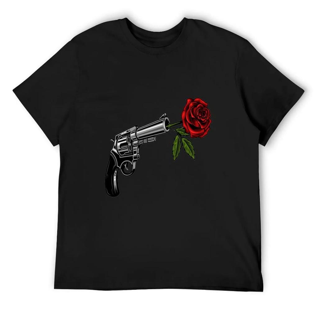 Gun with rose T-Shirt anime clothes Funny t-shirts football t shirt graphic shirts cotton t shirt men