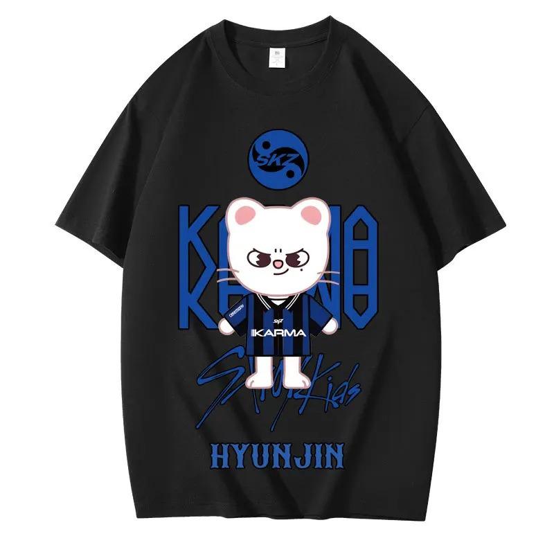 KPOP KARMA HYUNJIN Με Σχέδιο Κινουμένων Σχεδίων Σούπερ Μεγάλο Casual Χαριτωμένο Μόδα Γυναικείο T-shirt Κορεάτικη Μόδα Θαυμαστές Βαμβακερό T-shirt Harajuku Top