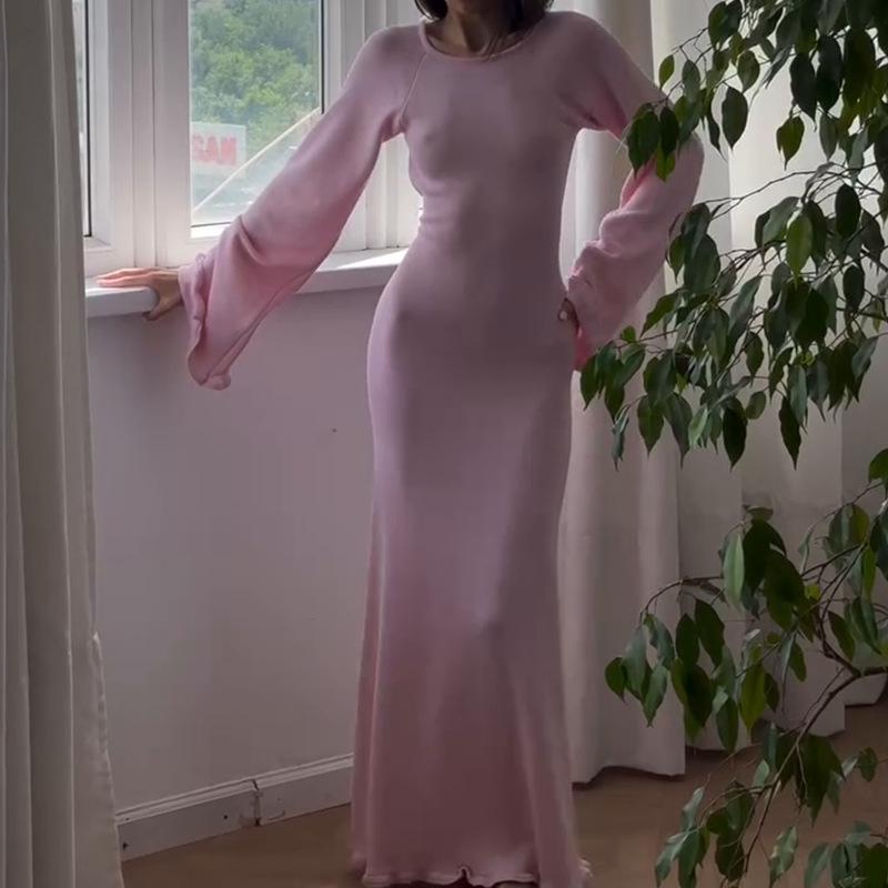 2024 Autumn Women's Fashion: Sexy Backless Knit Lace-Up Dress