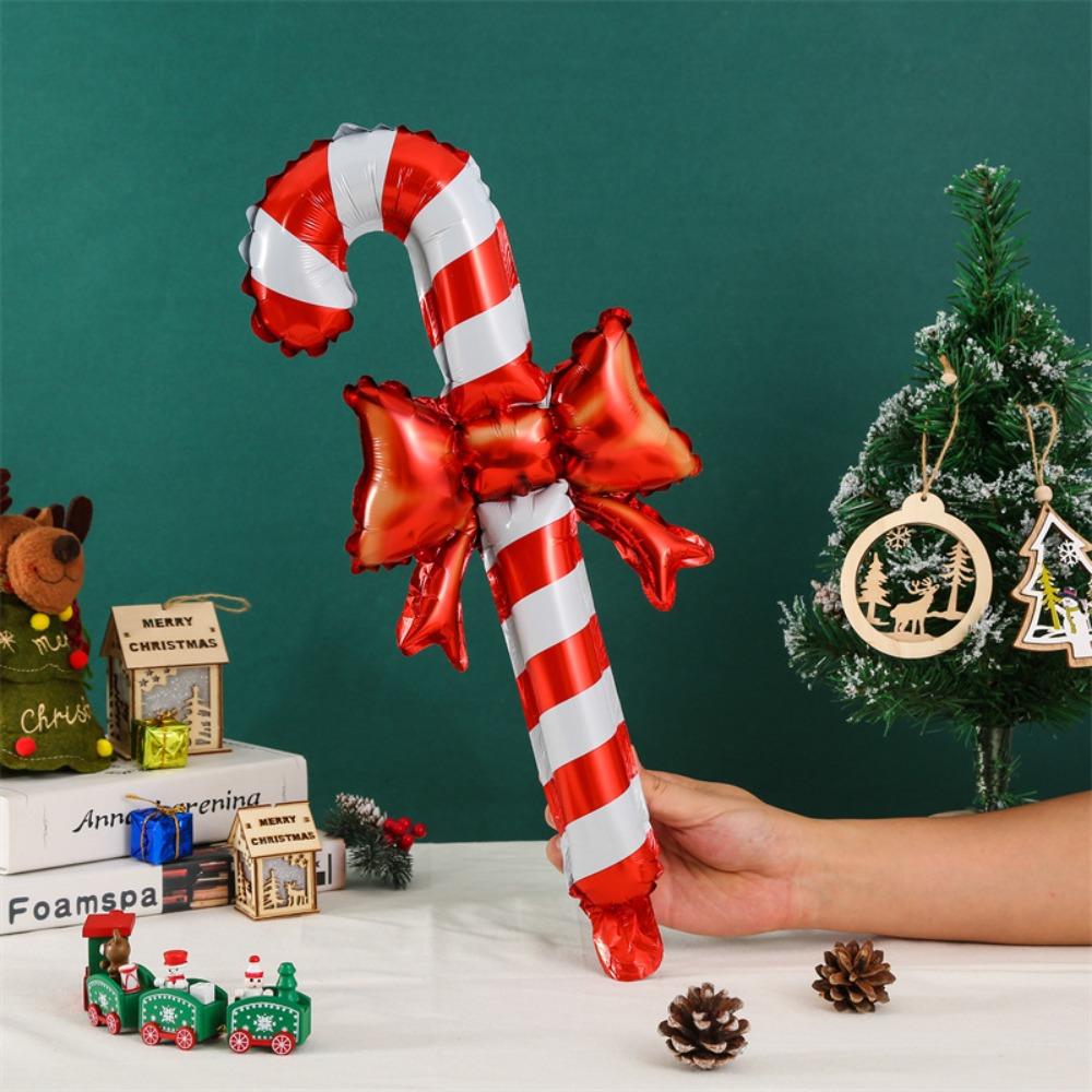 5/10Pcs Red Candy Cane Christmas Foil Balloons 3D Large 60CM Xmas Ornaments Balloons Kid's Hand-Held Party Inflatable Stick