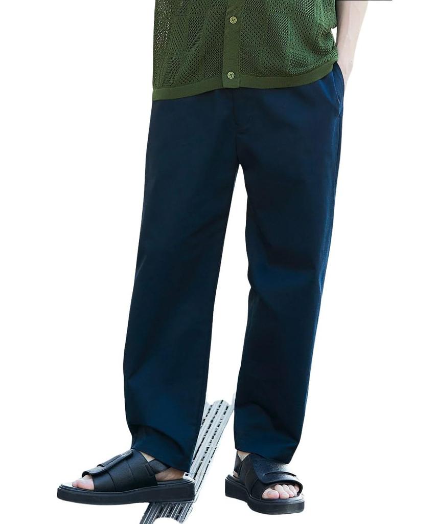 Nissen Men's Wide Tapered Elastic Long Pants, Navy, Size M (Plus Sizes Available)