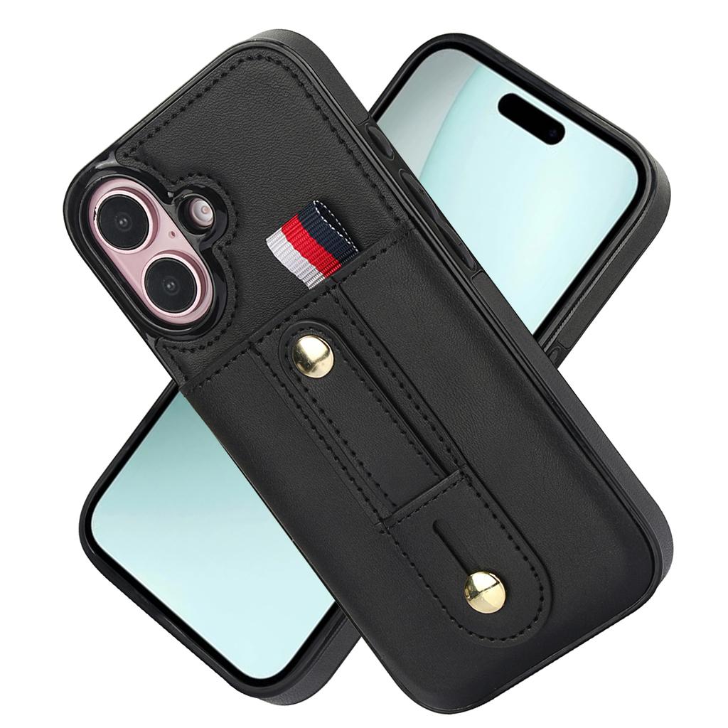 For iPhone 17 Case PU Leather+TPU Hidden Card Holder Drop-proof Phone Cover with Kickstand