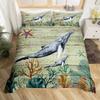 Κάλυμμα Πάπλωμα Βασιλιάς Βασίλισσα Φάλαινες Σετ Κλινοσκεπασμάτων Ωκεάνιο Ζώο Κάλυμμα Πάπλωμα Θαλάσσια Φύκια Αστερίας Θαλάσσια Ζωή Μπλε Πολυεστερικό Κάλυμμα Πάπλωμα