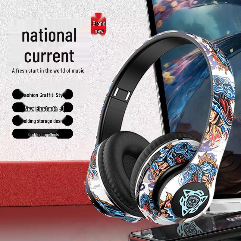 P35 Over-Ear Bluetooth Esports Headphones - Large Earcup, Graffiti Cool Design, Wireless, Noise Cancelling