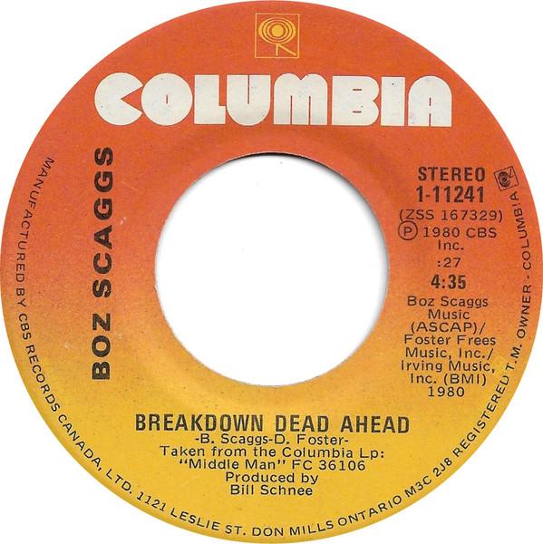7inch Record BOZ SCAGGS Breakdown Dead Ahead 111241 COLUMBIA 1980 Canada Rock Used
