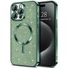 Electroplate Glitter Case For iPhone 16 15 14 13 12 11 Pro Max Plus For Magsafe Wireless Charge Bumper Cover With Lens Protector
