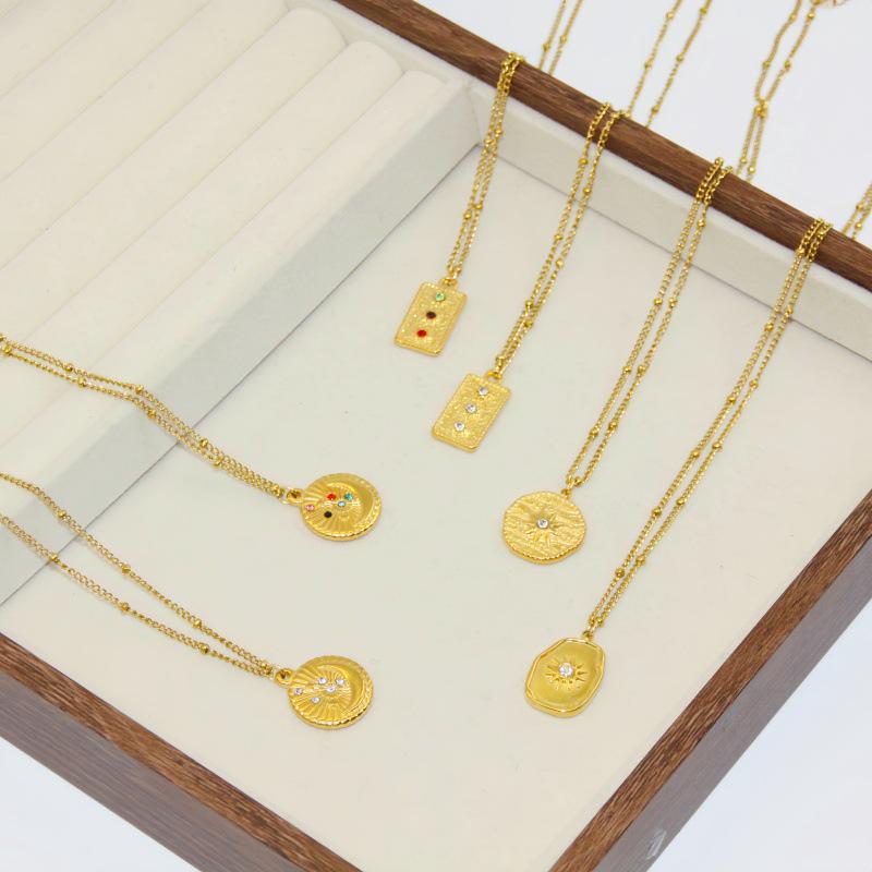 European & American Retro Sun Ray Small Round Pendant Necklace - Women's Simple Stainless Steel Clavicle Chain