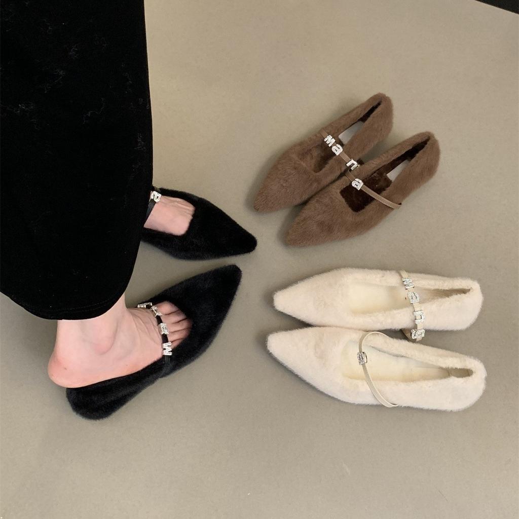Pointed hairy shoes female outer wear evening fairy wind flat single shoes female velvet