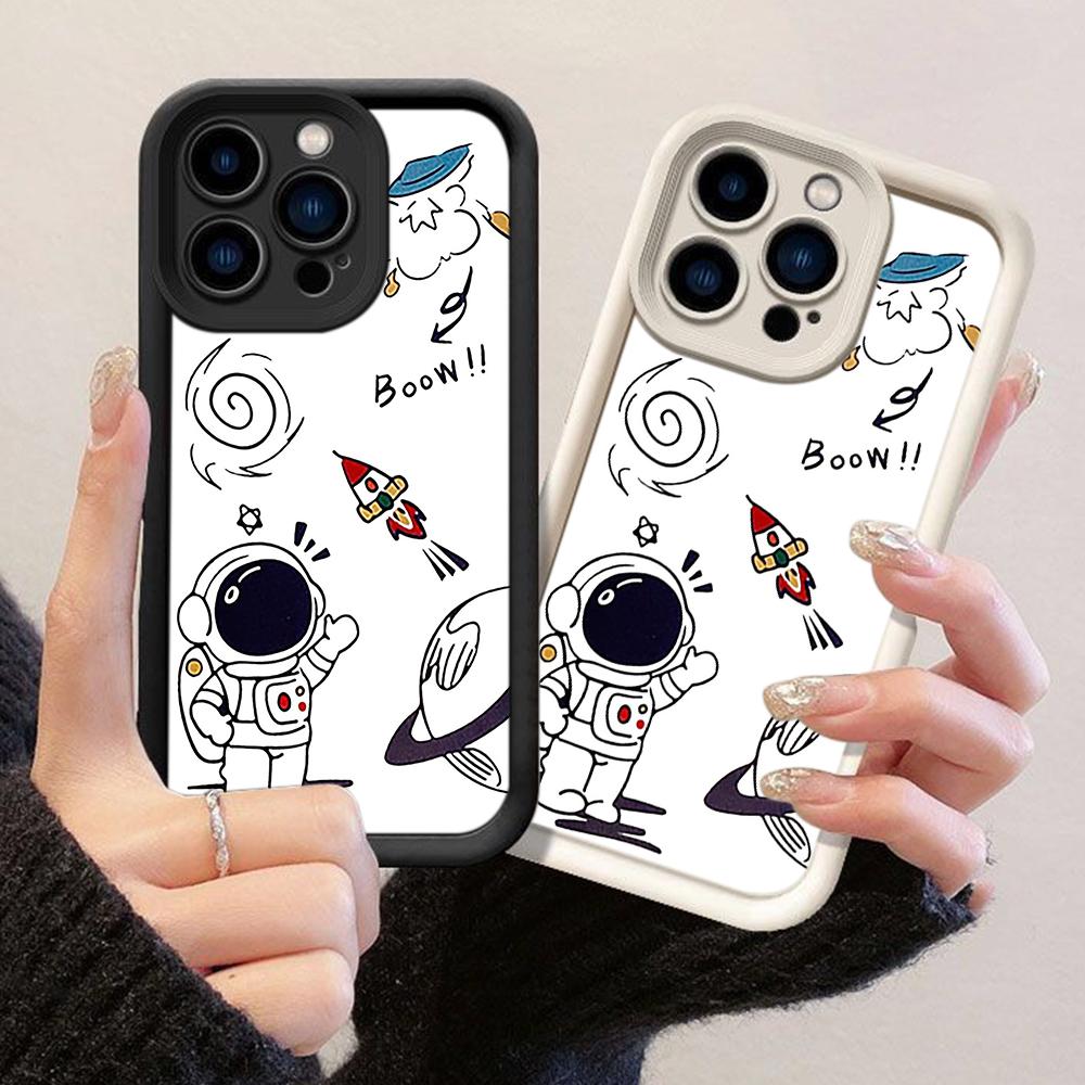 JT125 Charming Astronaut Doodle Riding Rocket for iPhone 17 16 15 Pro Max Samsung S26 S25 Ultra A17 A16 A07 A56 Xiaomi 15T Redmi 15c 14c Soft TPU Case