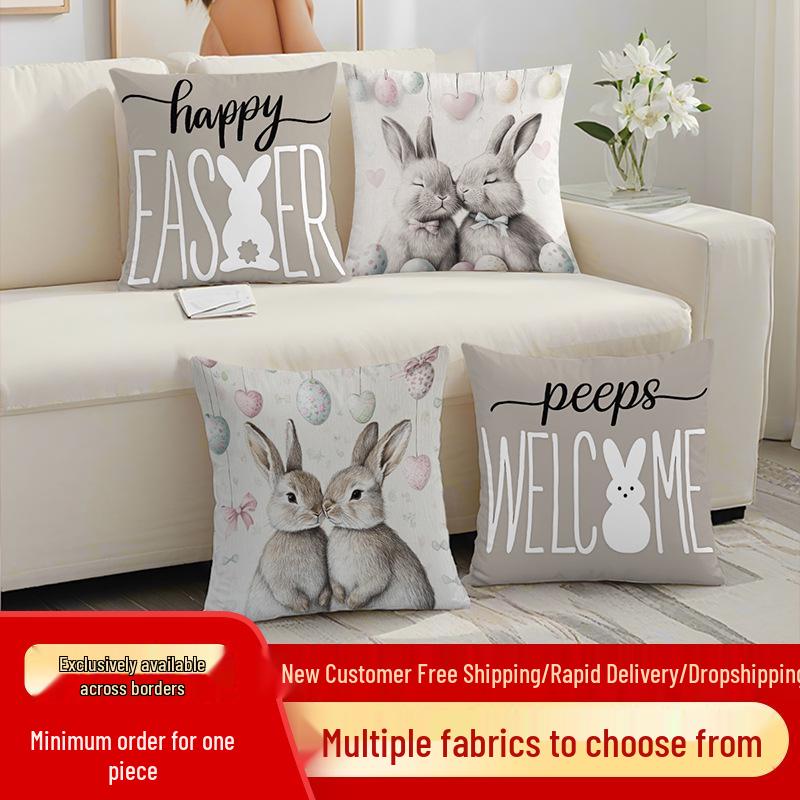 Nordic Holiday Rabbit Pillowcase - Short Plush Sofa & Bedroom Cushion Cover