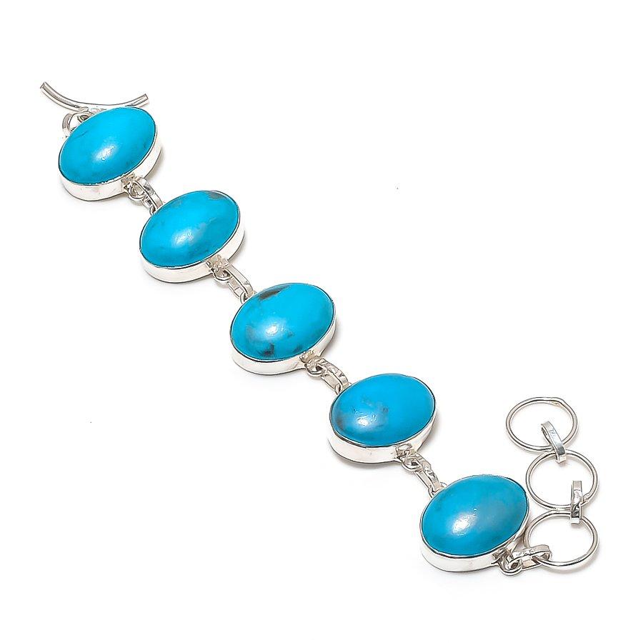 Natural Arizona Turquoise Gemstone 925 Sterling Silver Bracelet 7-8" ASB-2941