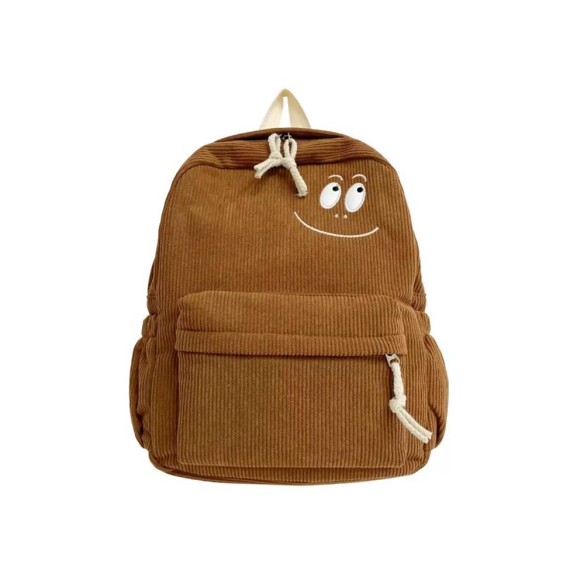 Whether as a practical large-capacity student school bag or a casual backpack for everyday outings, this backpack—featuring a cute smiley face design, comfortable corduroy material, and user-friendly multi-function organization—is a reliable companion for your study, work, and leisure life. Simple yet sophisticated, it accompanies you through every wonderful day.