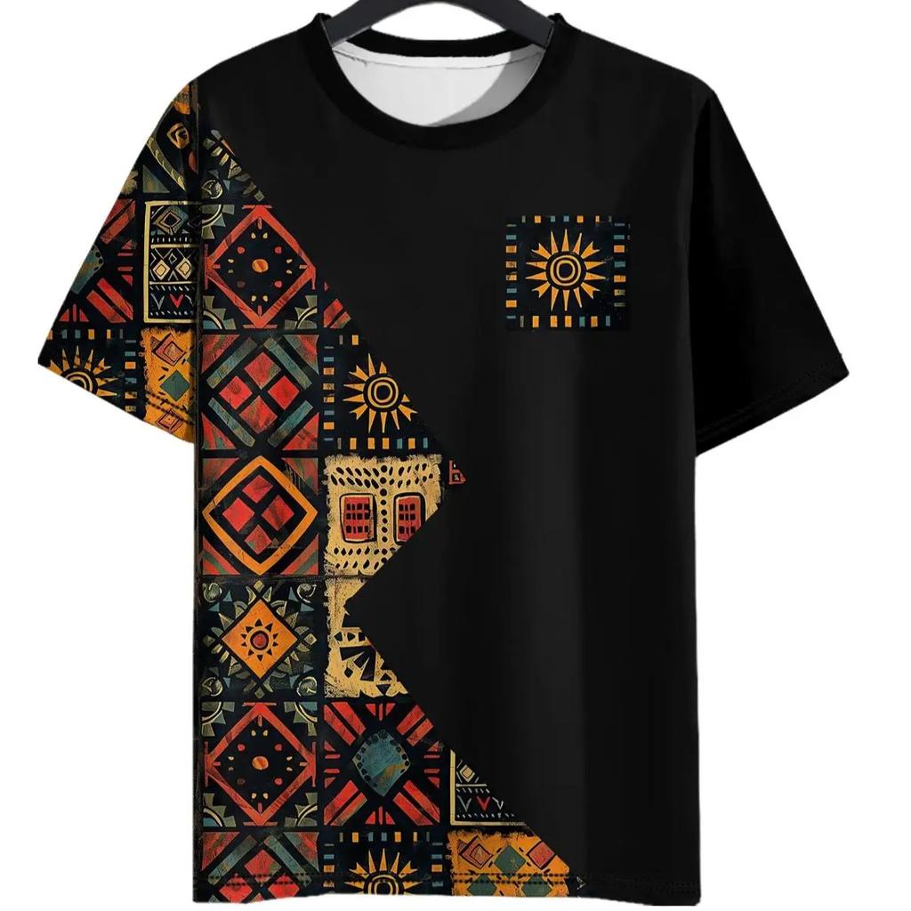 Vintage Ethnic Style Pattern Printed Men's T-Shirt Outdoor Casual Round Neck Short-Sleeved Street Male Oversized T-Shirts