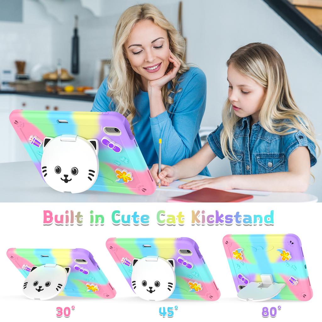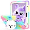 For iPad Air 11 (2025)/(2024) Case with Cat Kickstand PC + Silicone Colorful Tablet Cover