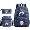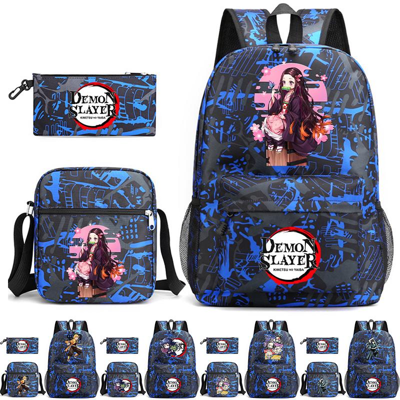 3Pcs/set Anime Printed Demon Slayer Backpack with Shoulder Bag Pencil Case for Teen Student Boy Girl Large Capacity Waterproof Bookbag Travel Bag
