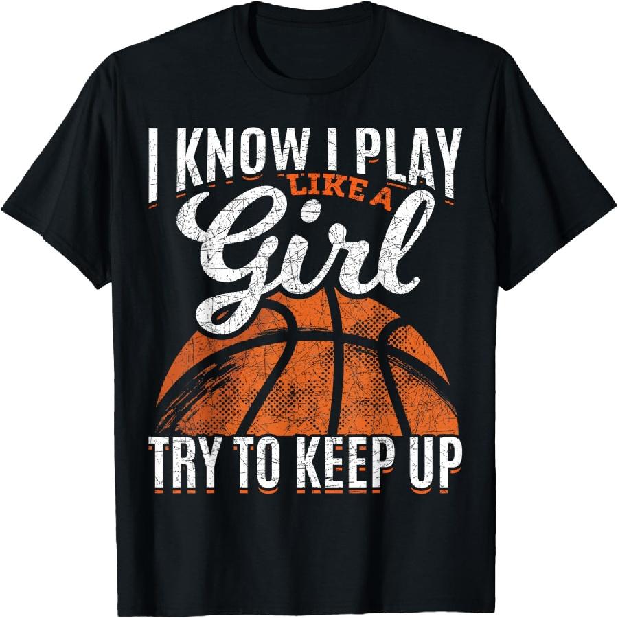 I Know I Play Like A Girl Try To Keep Up Funny Basketball T-Shirt