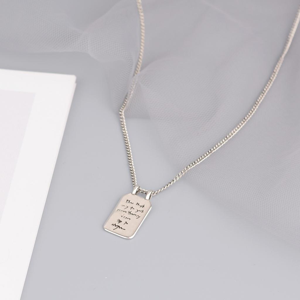 Wind English Rectangular Brand Necklace Women'S Retro Craftsmanship Thai Silver Niche Design Simple Neck Chain